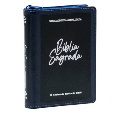 Bíblia Sagrada NAA Letra Maior Com Zíper Azul e Preta