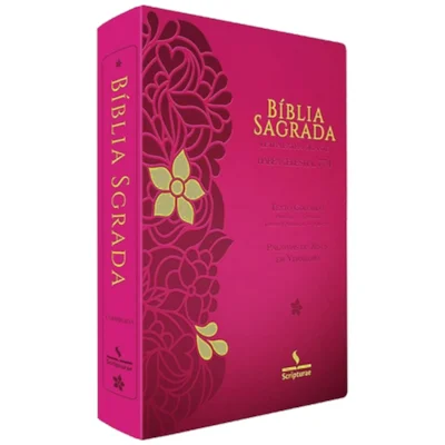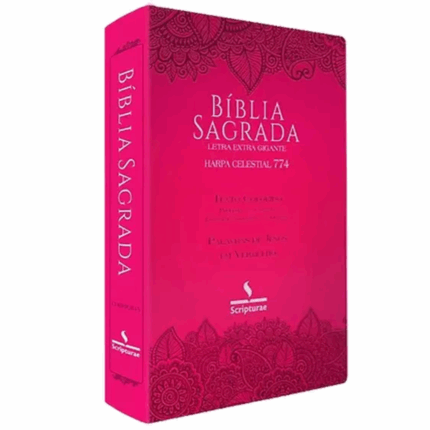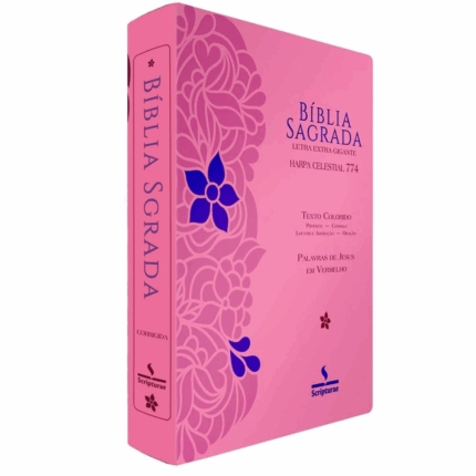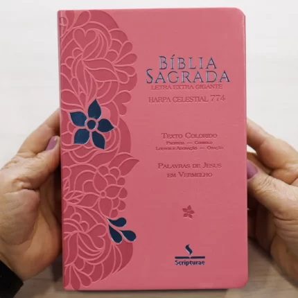 Bíblia Sagrada Harpa Celestial 774 ERC Letra Extra Gigante Capa Pink Floral