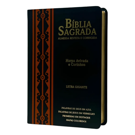 Bíblia ARC Letra Gigante Harpa E Corinhos Arabesco Preto E Verde